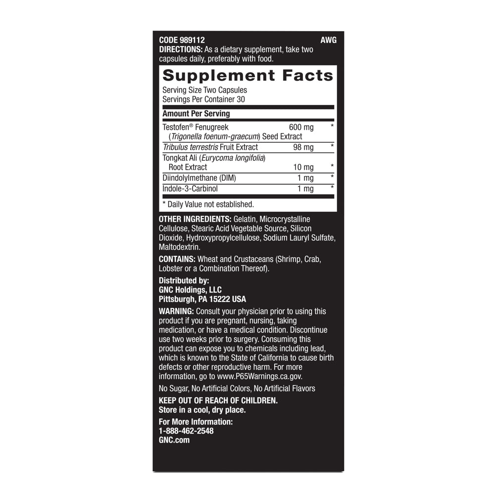 GNC Men’s Advanced Testosterone is a science-backed formula that is customized to support testosterone levels and fuel peak male performance*. As men age, testosterone levels gradually decline, and GNC Men’s Advanced Testosterone is scientifically formulated to support the healthy testosterone levels that can help maintain sex drive, sperm production, muscle strength and bone density*. Don’t settle for under-dosed or inferior support when it comes to your performance - GNC Men’s Advanced Testosterone is scientifically formulated with clinically validated ingredients, including the full clinically validated dose of Testofen®, a powerful herbal extract clinically proven to support healthy testosterone levels and sexual health plus prime your body for peak performance*.