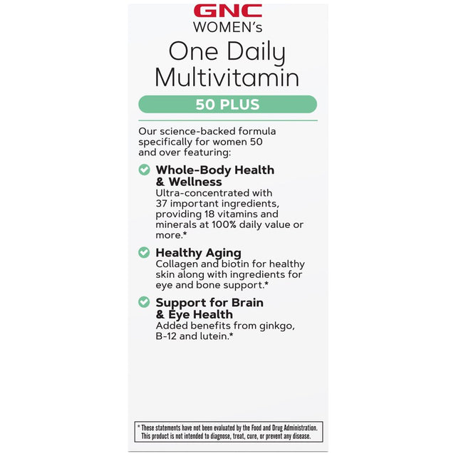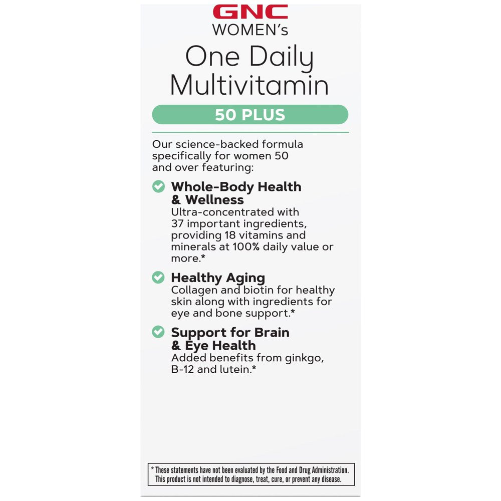 GNC Women's One Daily Multivitamin 50 Plus: Specially formulated for the overall health & wellness of women 50 over 60-day supply 60 capsules per container Gluten free