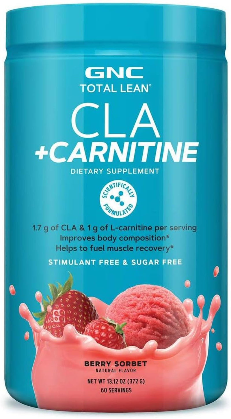 GNC Total Lean CLA + Carnitine | Improves Body Composition and Fuels Muscle Recovery, Stimulant Free and Sugar Free | Berry Sorbet | 60 Servings