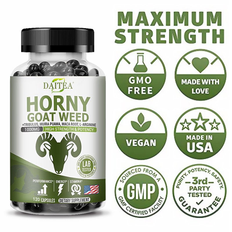 Goat Grass Extract 1000Mg - Maca Root, Tribulus, Muira Puama, L-Arginine, Icariins - Gluten-Free Non-Gmo - Men Women Supplements for Healthy Energy Muscle Workout Testo Booster-120Capsules - 120 is backordered and will ship as soon as it is back in stock.