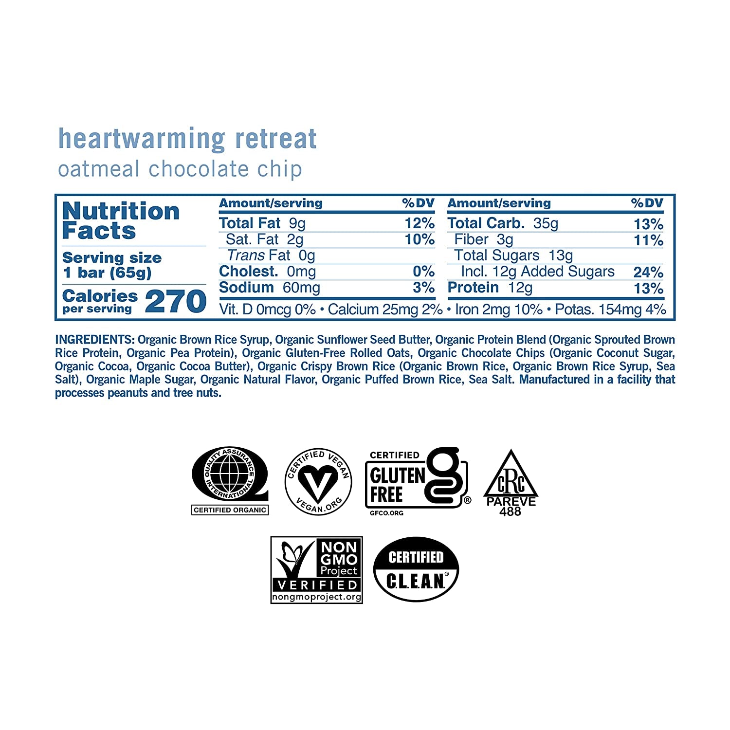 - HEALTHY INDULGENCE: A cozy combination of chewy oats and organic chocolate chips make this protein-filled, nut-free version of our family’s oatmeal chocolate chip cookie recipe a fan favorite.