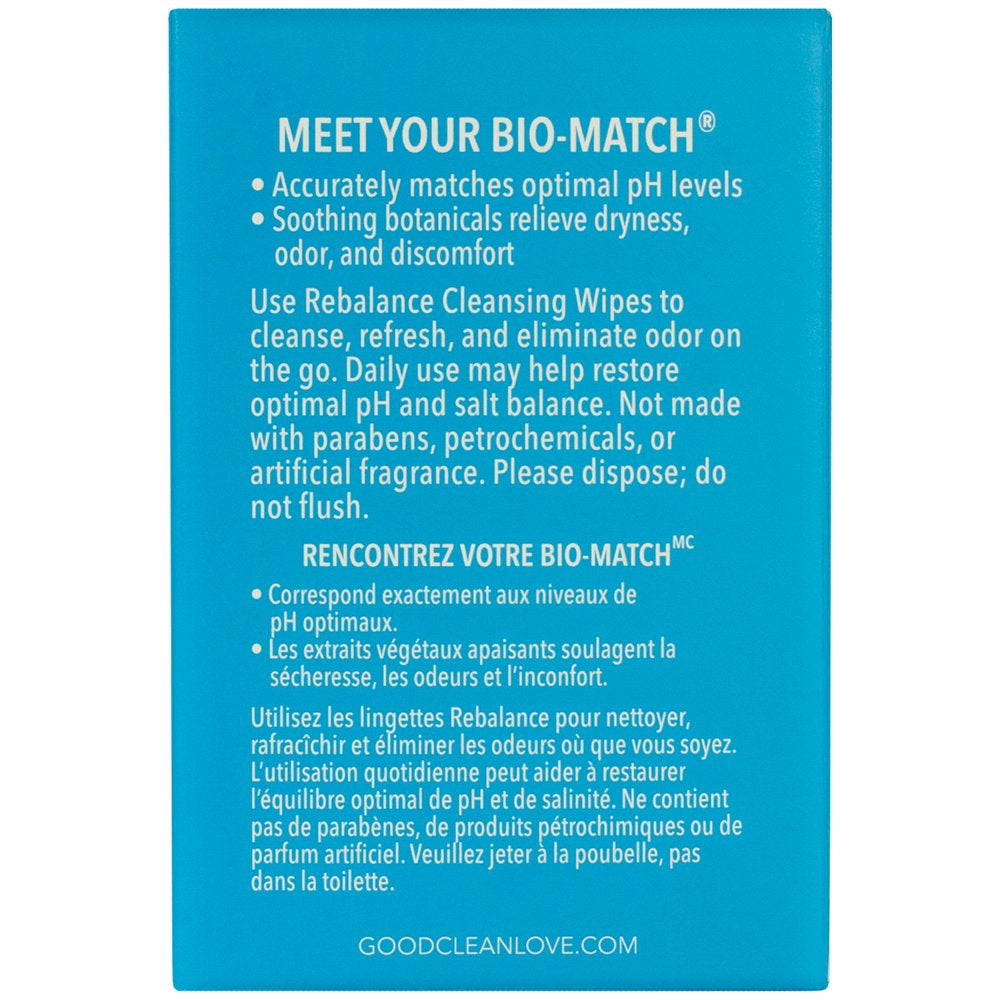 Try OBGYN-recommended Rebalance Moisturizing Wipes today athome, on the road when you travel, at the gym after a workout, or anytime,anywhere you want to feel your confident best. Rebalance Moisturizing Wipes useBio-Match® technology to help cleanse, refresh, and eliminate abnormal odorwith a gentle nourishing cleanser infused with soothing botanical extracts.