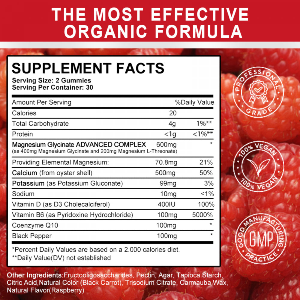 - ✔️MADE WITH WHOLESOME INGREDIENTS - Our magnesium glycinate gummies , Magnesium Glycinate 400mg, Vitamins D, B6, Calcium, Potassium, etc. Added Vitamin B6 can help magnesium work better, and Coenzyme Q10 and Potassium help support the mind system and improve fatigue and inattention, Vitamin D promotes the absorption of calcium.