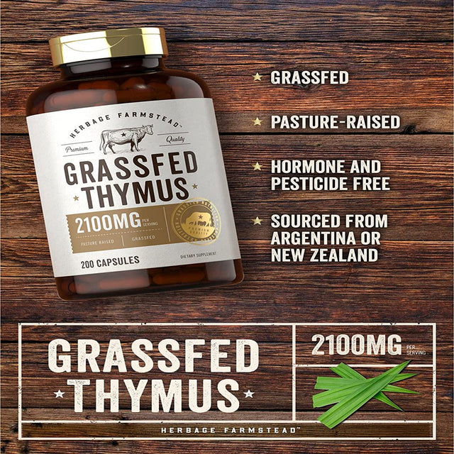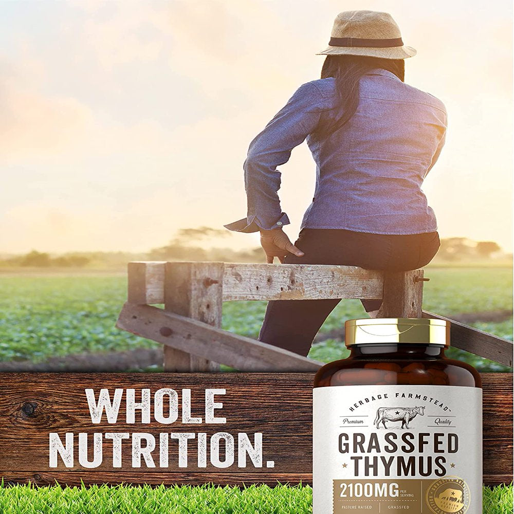 Grass Fed Beef Thymus | 2100Mg | 200 Capsules | by Herbage Farmstead