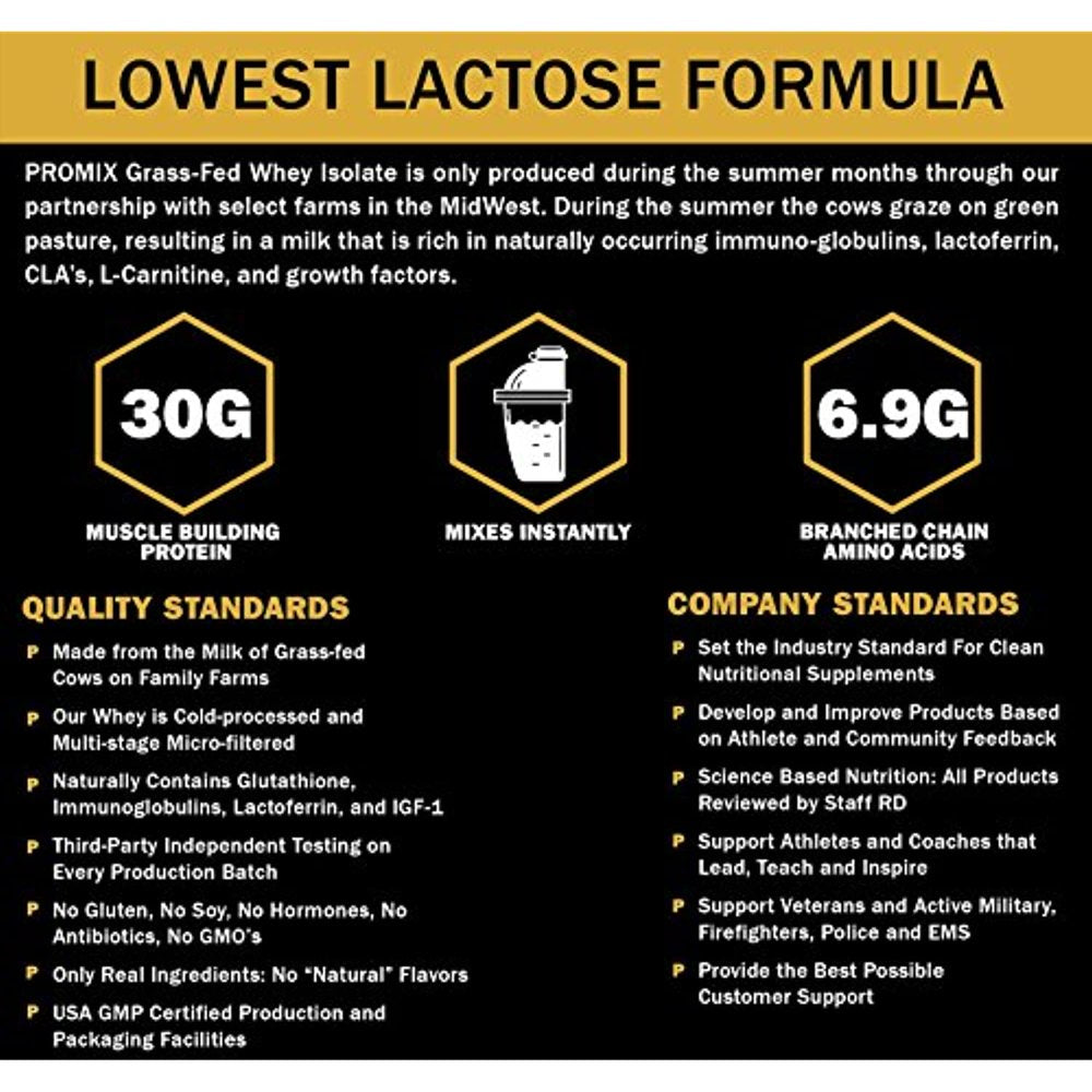- ALWAYS GRASS FED: Unlike other isolate whey proteins our seasonal production ensures you get grass fed whey; Promix brings years of pure GMP certified whey protein quality you can trust