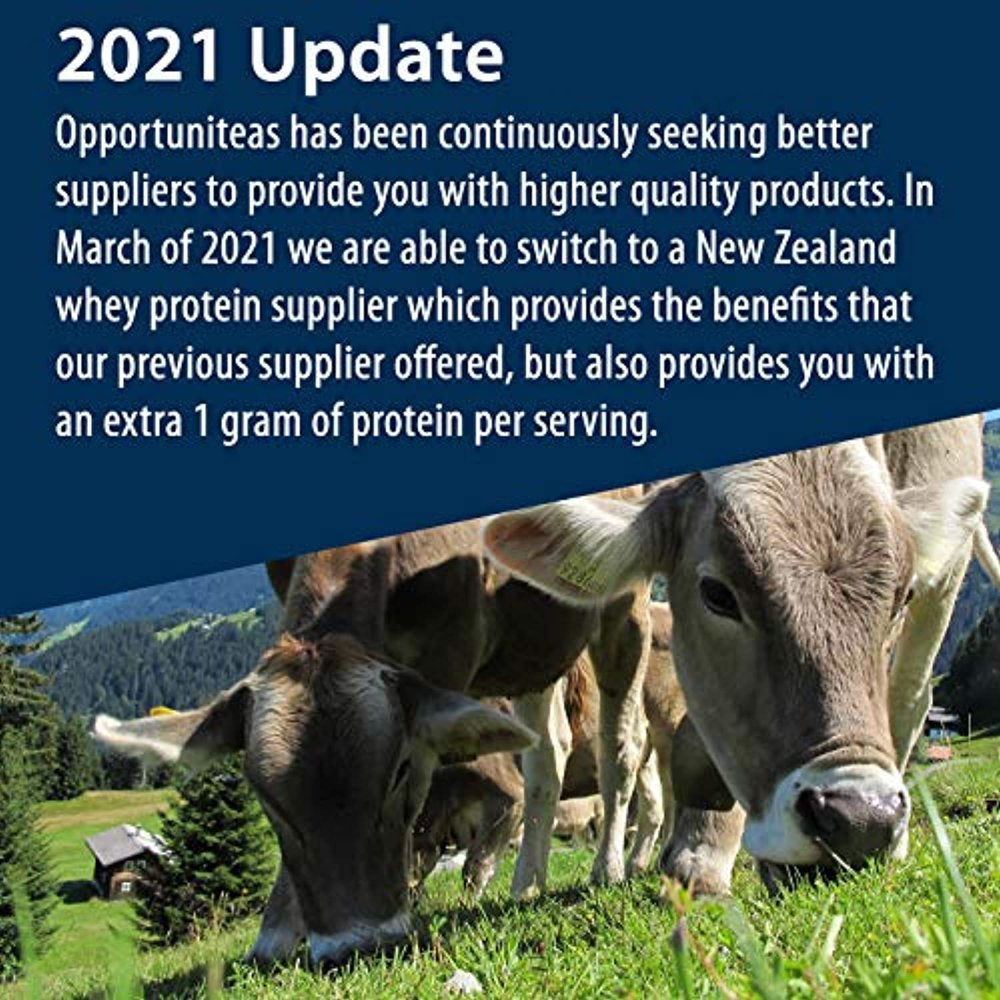 As we all know the protein industry is huge now and all I can tell you is, forget the fancy shiny packaging, labeling, the ridiculous amount of flavors, and all the stuff with added crap, etc. What you want is top quality, grass-fed protein from cows that are from a good climate because they produce better protein. You won't find a better choice than Opportuniteas grass fed whey protein powders which are now from New Zealand. The New Zealand environment is ideal for growing grass. Moderate temperatures, fertile soil, plentiful rainfall, and abundant sunshine help our pastures grow thick with lush green grass. Our farming follows the natural patterns of pasture growth in New Zealand, making it one of the few places in the world where cows graze on grass for most of the year. Grass is a natural food source for cows. Annually, on average 85% of our cows’ diet is grass. Our cows can graze naturally outdoors on the grass of open pastures, as nature intended. On average, they spend 90% of their time outside on pasture during the year. They are free to roam around paddocks and exhibit natural behaviors. Our cows are happy and contented, and we are internationally recognized for our high standards of animal welfare.