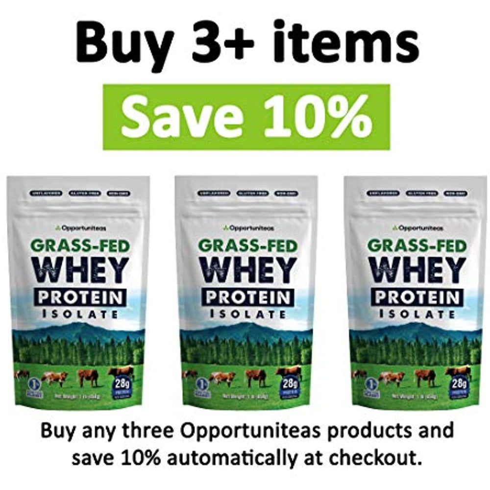 - MONEY BACK GUARANTEE - We are so proud of our premium grass-fed whey protein, we back it with a no questions asked, 100% money back guarantee. If you don’t love it for any reason just contact Opportuniteas and we will send your money back.