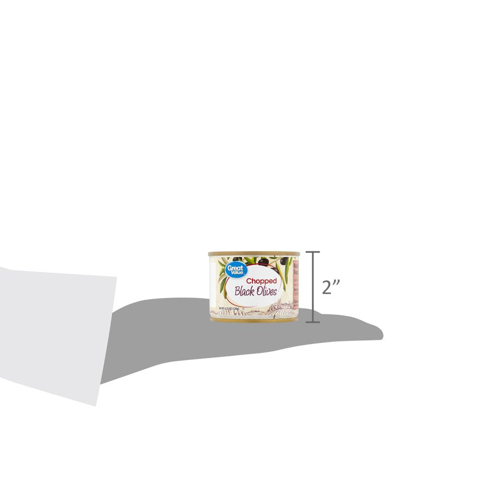 Great Value Chopped Black Olives are infused with a mild, zesty flavor that adds a touch of Mediterranean cuisine to your meals. These salted black olives have been chopped into pieces that blend in easily with almost any food item, and they are ready to eat. They offer a convenient culinary experience as they have been pitted to remove their seed. You can use them for garnishing your pizzas, hot dogs, and sandwiches, or adding to salads, pastas, sauces, chicken, and salmon dishes. They are equally excellent for serving as an appetizer. With a taste that makes it a favorite of the entire family, Great Value Chopped Black Olives are a must-have ingredient in your kitchen.