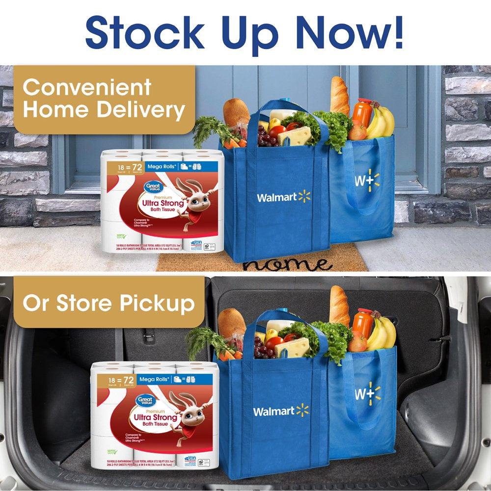 Great Value Ultra Strong Toilet Paper, 18 Mega Rolls