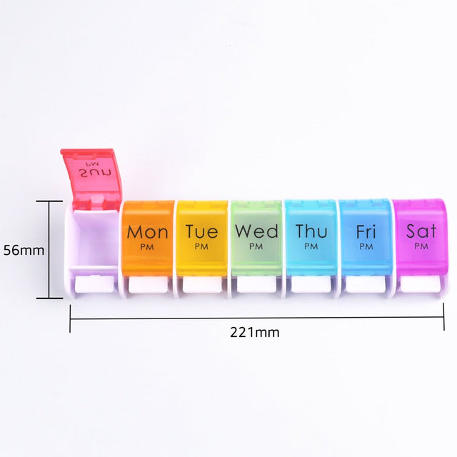 Using a pill dispenser, you can organize your weekly pills at the beginning of a week and keep track of daily medications, the pill container will remind you to take the right pills at the right time, every day.