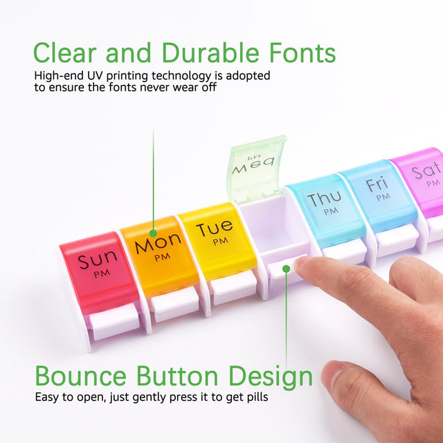 • 【Easy to Open/Close】Bounce button design makes the pill box easy to use, just slightly press the botton to get your pills.