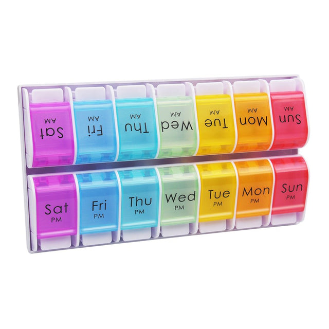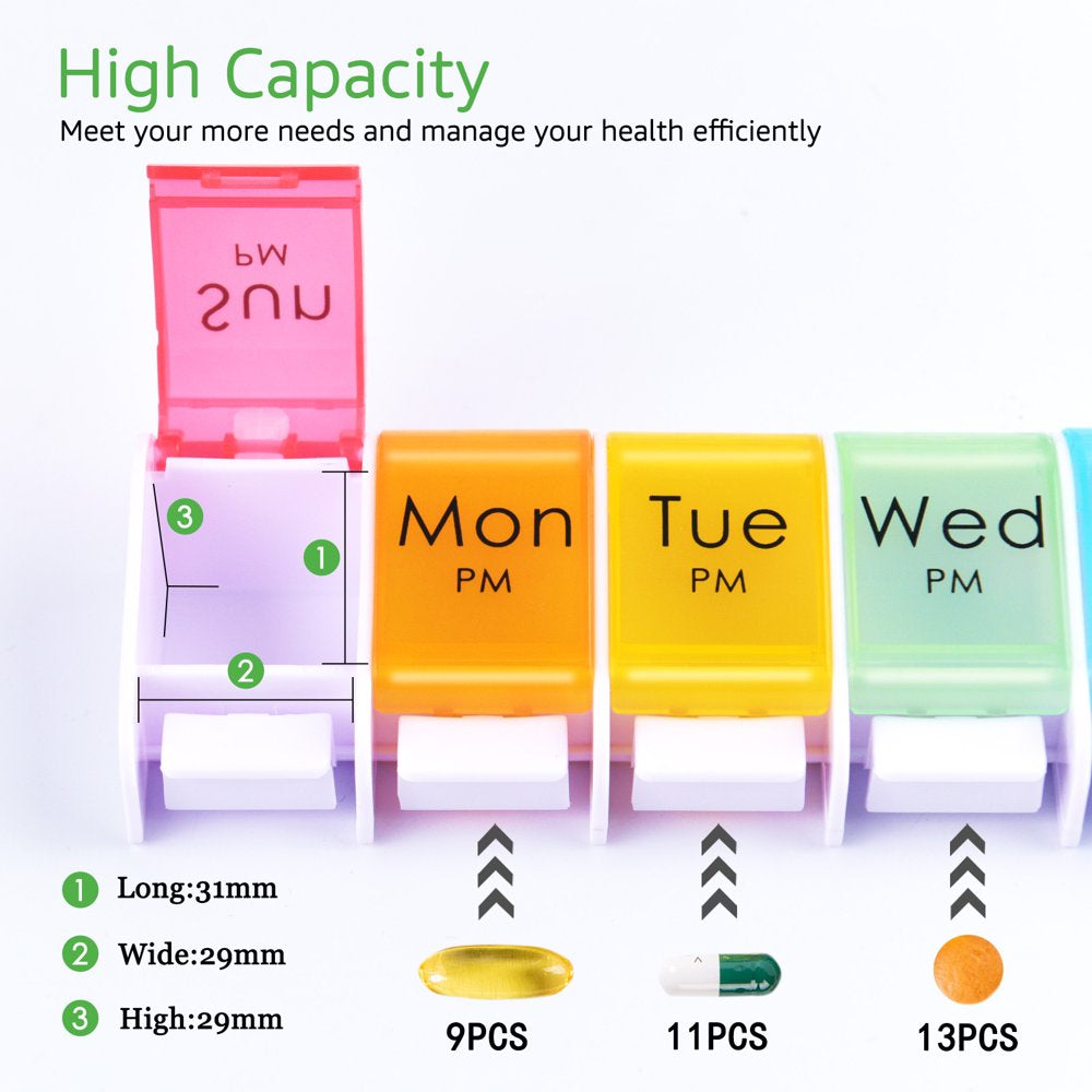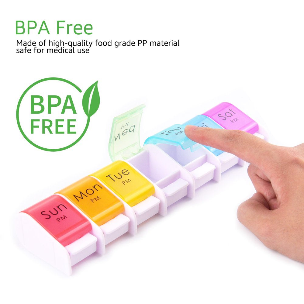 Greencycle Weekly 7 Day Push-Button Pill Organizer Arthritis Friendly 2 Times a Day AM/PM Bpa-Free Pill Box Moisture-Proof Pill Cases Design for Vitamins Fish Oil Compartments Supplements (Rainbow)
