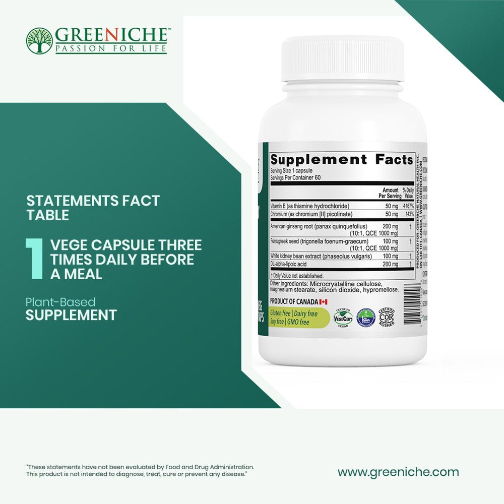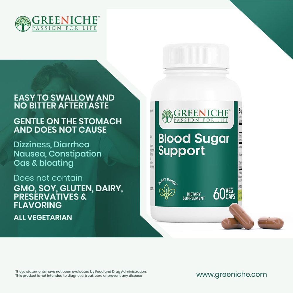 - Get natural support for those living with diabetes with Greeniche Natural Health's Blood Sugar Support Capsules. This all natural herbal supplement from Greeniche helps to promote healthy glucose levels and glucose metabolism when taken before a meal.