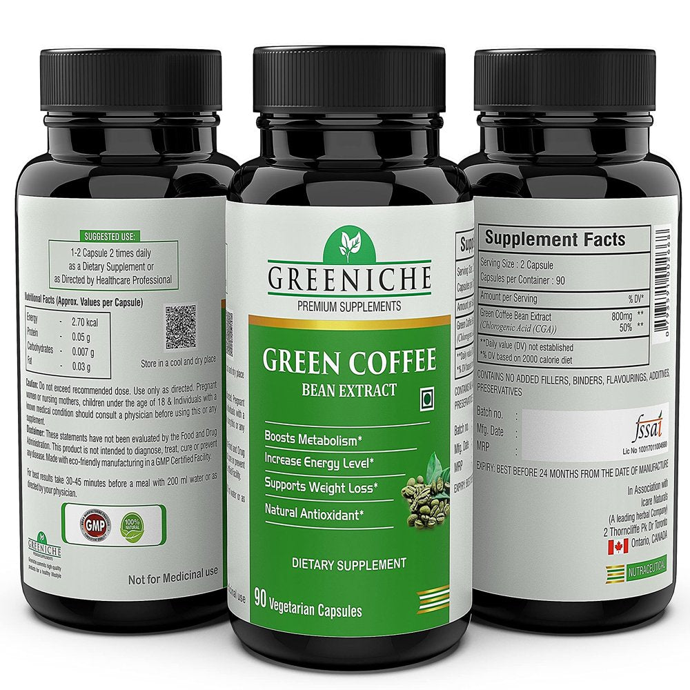 This Natural Supplement Supports Weight Loss With The Help Of Chlorogenic Acid. Greeniche Products Green Coffee Bean Extract Contains 50% Chlorogenic Acid. It Promotes Metabolism And Releases Less Glucose In Bloodstream Resulting Weight Management. Greeniche Pure Green Coffee Beans For Weight Loss Extract For Men And Women 800Mg - 90 Capsules