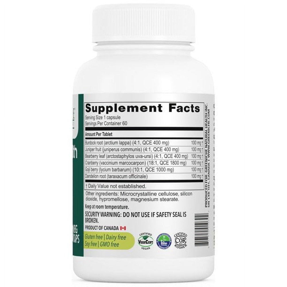 - ADVANCED URINARY TRACT AND BLADDER SUPPORT: Greeniche Kidney Health Support Supplement is a blend of powerful herbs to help support not just kidney health, It also helps to support Urinary Tract & Bladder Health. It contains Cranberry, Burdock Root Juniper Fruit, Bearberry Leaf, Goji berry and Dandelion Root that combines to support proper functioning of Urinary Tract and Bladder