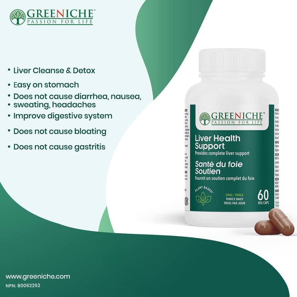 - LIVER SUPPORT SUPPLEMENT: Greeniche Liver health formula is a liver support supplement that prevents the risk of developing liver issue and helps you keep active throughout the day