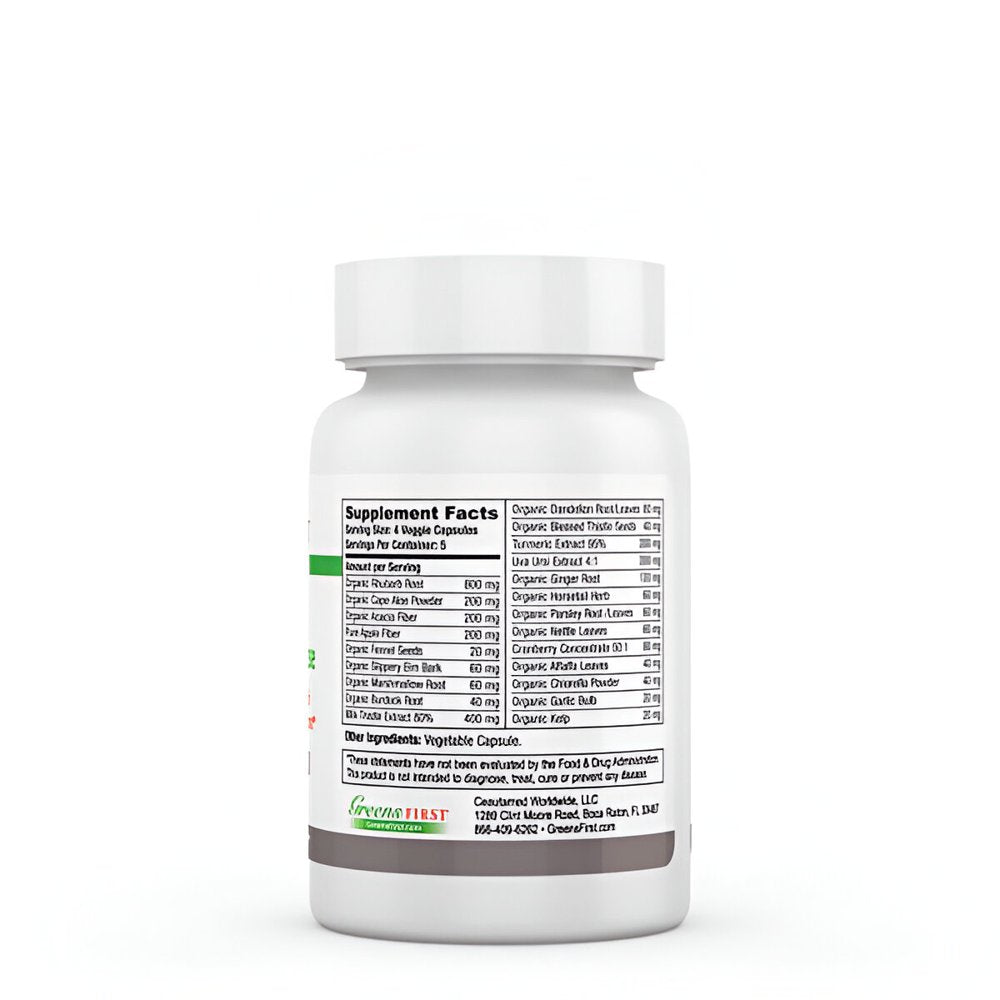 Greens First Full Body AM/PM Cleanse is a 5-day cleanse formulated with organic herbs and fibers to detoxify the body and restore healthy digestion.* The Full Body AM/PM Cleanse is a worry free professional grade cleanse filled with organic ingredients that are gentle on the intestinal lining.* This product provides a natural way to refresh the digestive system and reestablish regular bowel movements.* Rhubarb root, cape aloe powder, organic acacia fiber, and organic marshmallow root help support the elimination of waste.* With 2 veggie capsules in the morning and evening, this cleanse can be completed in just 5 days. Bottle contains 20 veggie capsules, a 5-day supply.