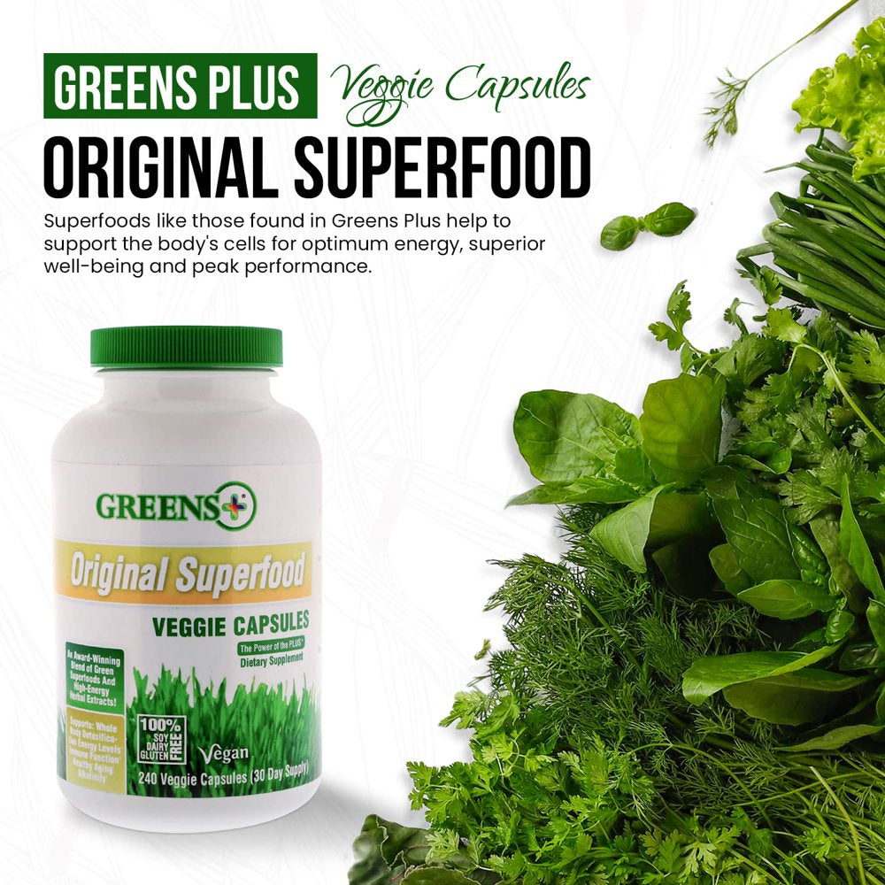 Greens plus Capsules Superfood Greens Supplements, Organic, Vegan, Veggie Capsules - 240 Count