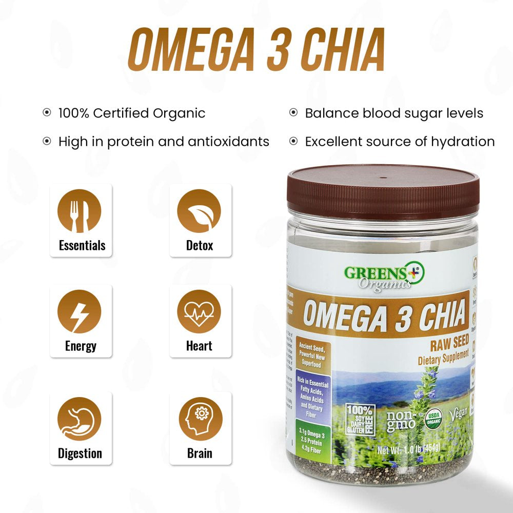 Greens plus Organic Omega 3 Chia Ancient Raw Seed | Dietary Supplement | 1 Lb Jar