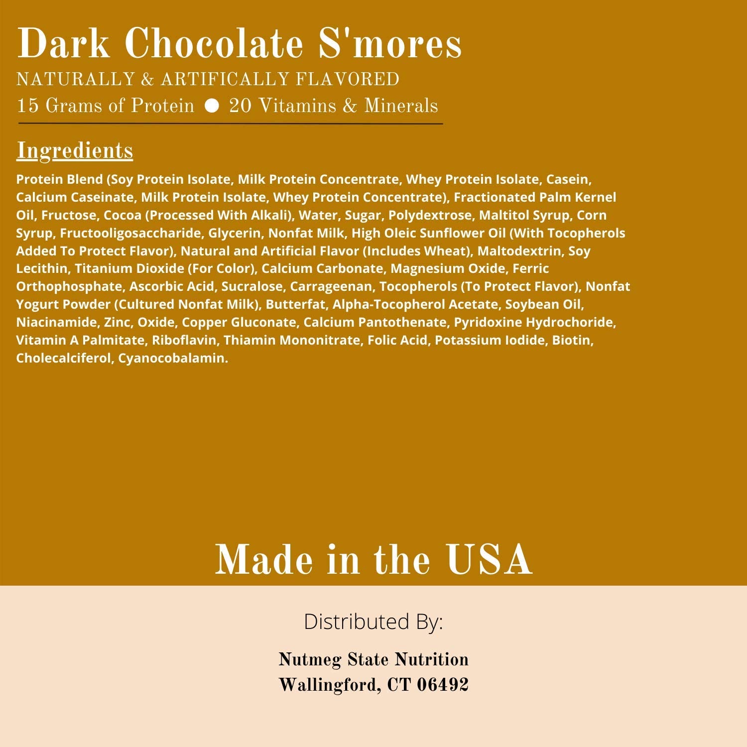 The DPTG 15 Gram high fiber meal replacement dark chocolate smores crunch bar is the perfect protein bar to enjoy while you are dieting or if you are just looking to have extra protein in your diet! These bars have been used by many client’s at the Nutmeg State Nutrition weight loss center to shed those unwanted pounds. This bar is packed with 15 grams of delicious protein and loaded with 17 vitamins and minerals and contain only 160 calories. This bar has been used by countless numbers of clients at the Nutmeg State Nutrition weight loss center to help them feel full and keep their appetites suppressed. Be sure to try this great tasting low calorie, low carb, low fat, high protein bar today