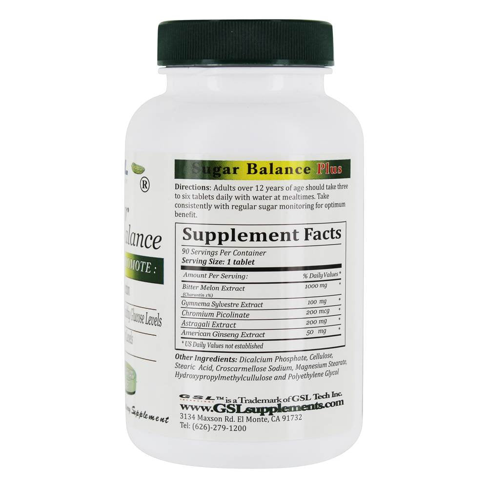 GSL Technology - Sugar Balance plus for Insulin Function, Glucose Levels & Weight - 90 Vegetarian Tablets