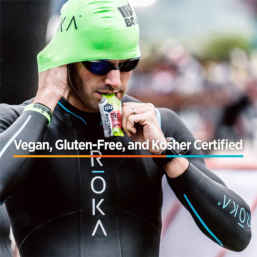 gu roctane ultra endurance energy gel is a high-intensity offering from gu, the original sports energy gel. designed for extreme and long-duration endurance activities, gu roctane energy gel comes in highly compact, portable, and calorie-dense packets that are loaded with carbohydrates that can be rapidly absorbed. athletes performing at a high level for hours on end need more from their nutrition, which is why roctane energy gel packs three-times the amino acids and twice the sodium as original gu energy gel. these ingredients boost roctanes efforts to help decrease muscle damage, promote muscle repair, and maintain water balance. each packet of gu roctane ultra endurance energy gel contains 100 calories and 1425mg of amino acids.