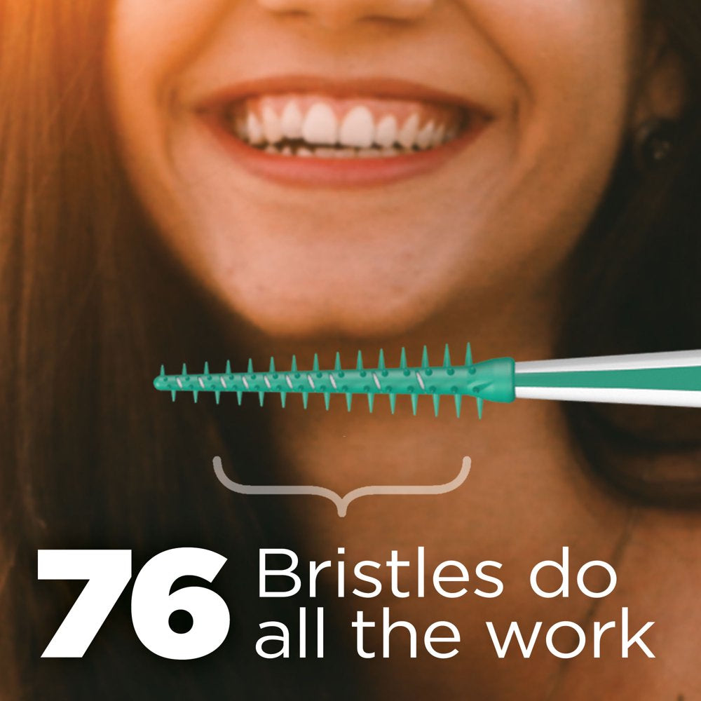 - Gentle, flexible bristles slide between teeth to help remove food and plaque