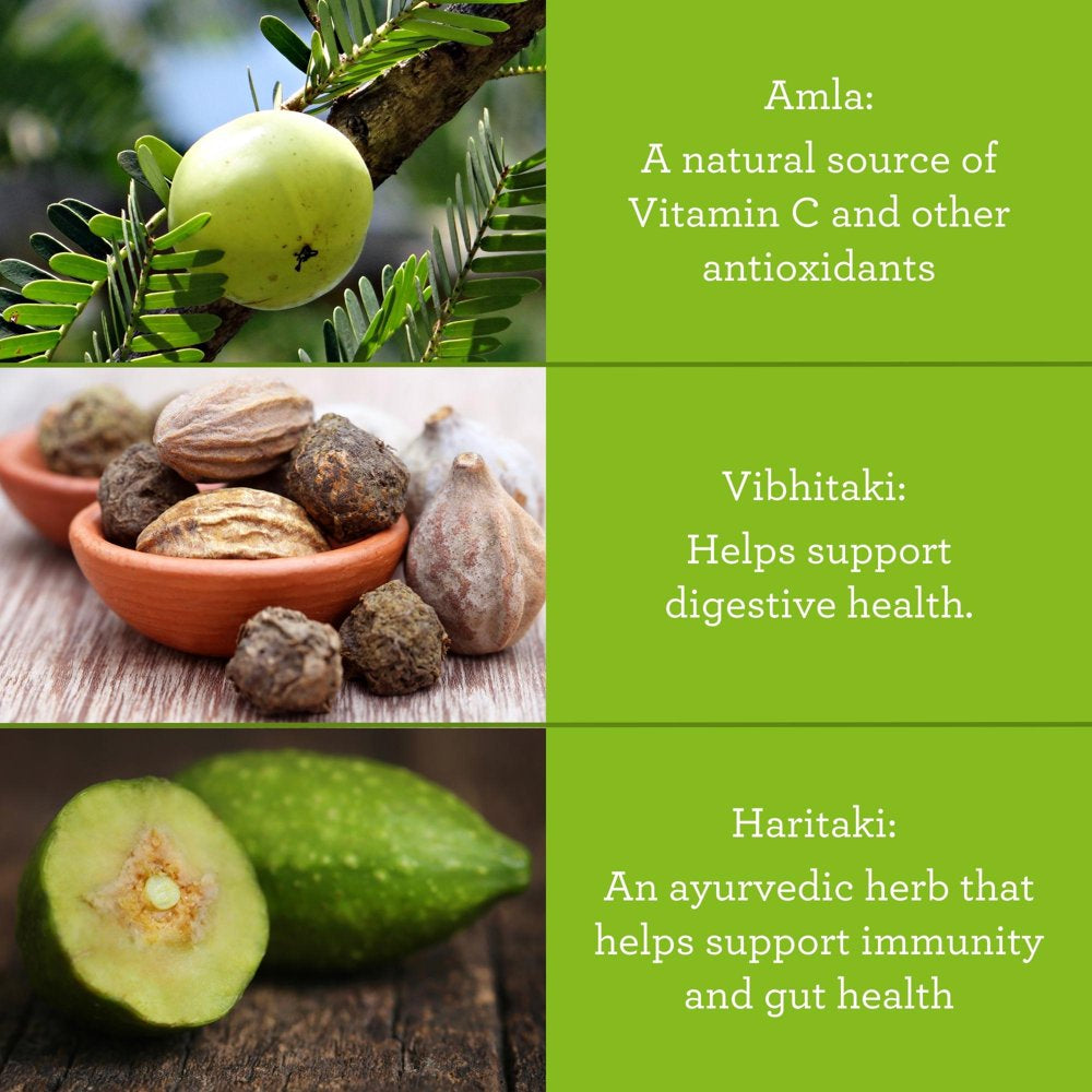 - SOOTHING HERBAL EXTRACTS: This dietary supplement also incorporates soothing herbal extracts known for their digestive benefits. Ingredients like amla, haritaki and vibhitaki have traditionally been used to help alleviate digestive discomfort, aid in reducing gas, and help calm the inflammation in the digestive tract along with their antioxidant properties.