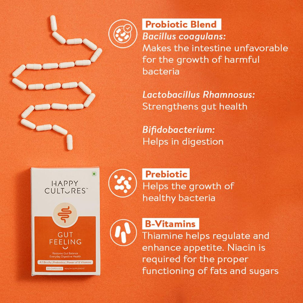 Gut Feeling Digestion Supplement Unique Blend of Probiotics for Daily Digestive - 30 Veg Capsule