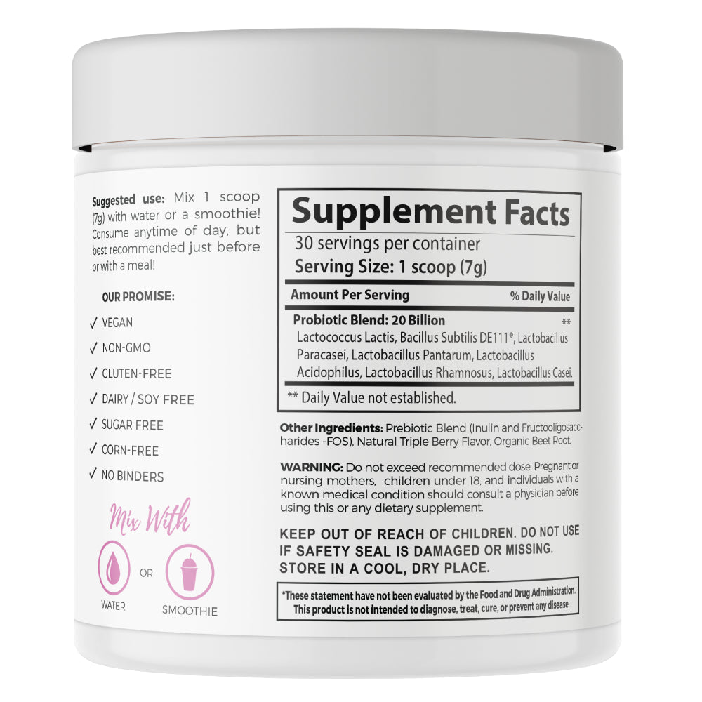 Probiotics are living microorganisms – known as “beneficial bacteria” – that support regular digestion, feelings of bloat, and promote well-being from the inside out!