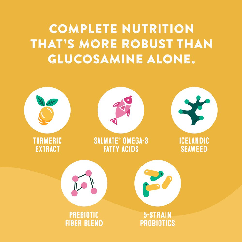 - REACH NEW HEIGHTS: Veterinarian formulated for hip and joint dog health that’s more robust than glucosamine for dogs alone, Happy Go Healthy uses Turmeric Extract, Organic Icelandic Seaweed, and Omega-3s from wild salmon to sustain supple joints & strong bones in dogs big and small.