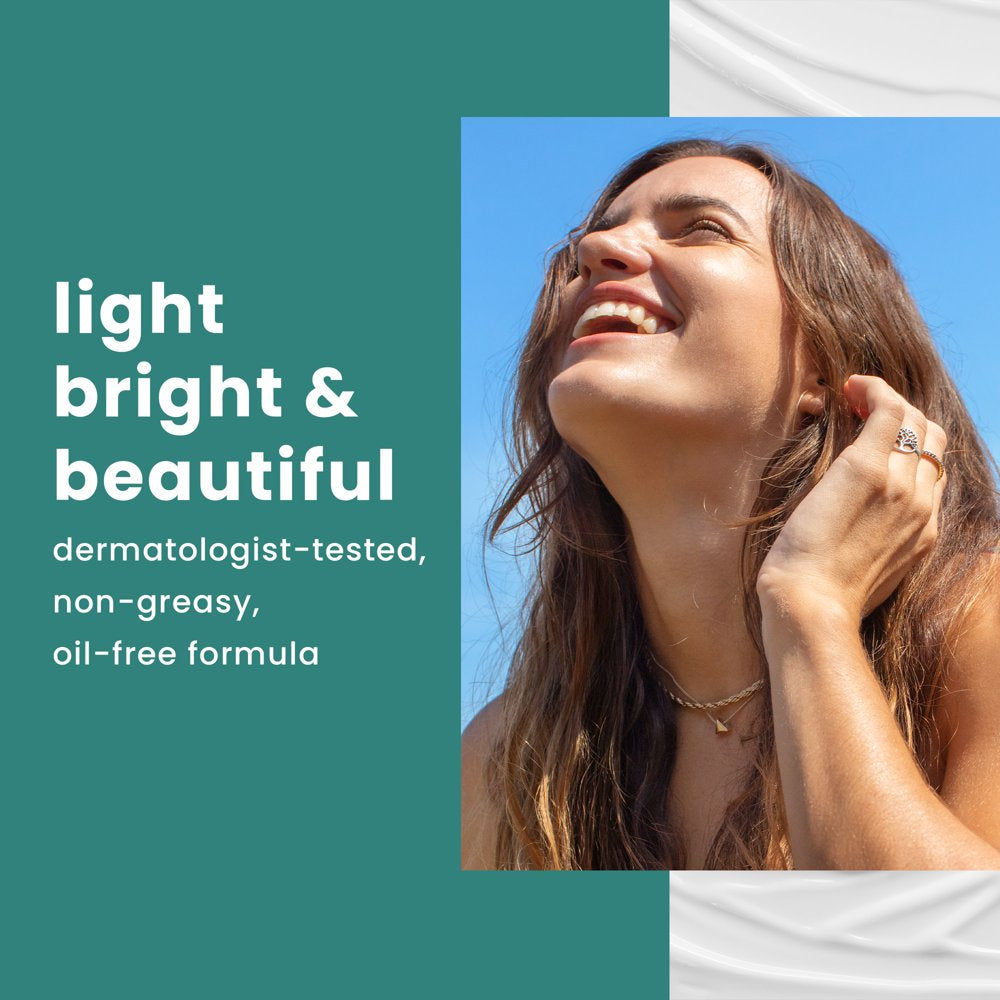 | Features | Broad-spectrum UVA and UVB sunscreen, REEF SAFE, made without oxybenzone and octinoxate, OIL-FREE & non-greasy, Contains VITAMINS C & E and MANGO FRUIT extract and a SHEA BUTTER complex, Recommended by the Skin Cancer Foundation |