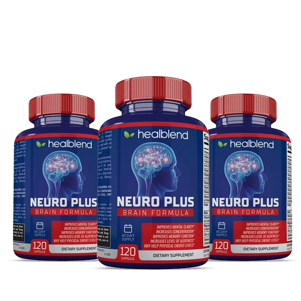 Healblend Neuro plus Brain Booster Supplements - Brain & Focus Formula, Supports Memory, Concentration & Mental Clarity - 3-Pack