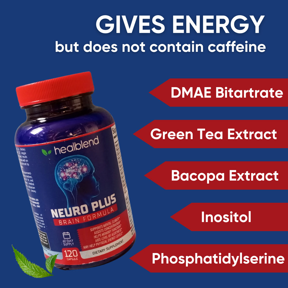 Healblend Neuro plus Brain Booster Supplements - Brain & Focus Formula, Supports Memory, Concentration & Mental Clarity for Adults - 120 Capsules