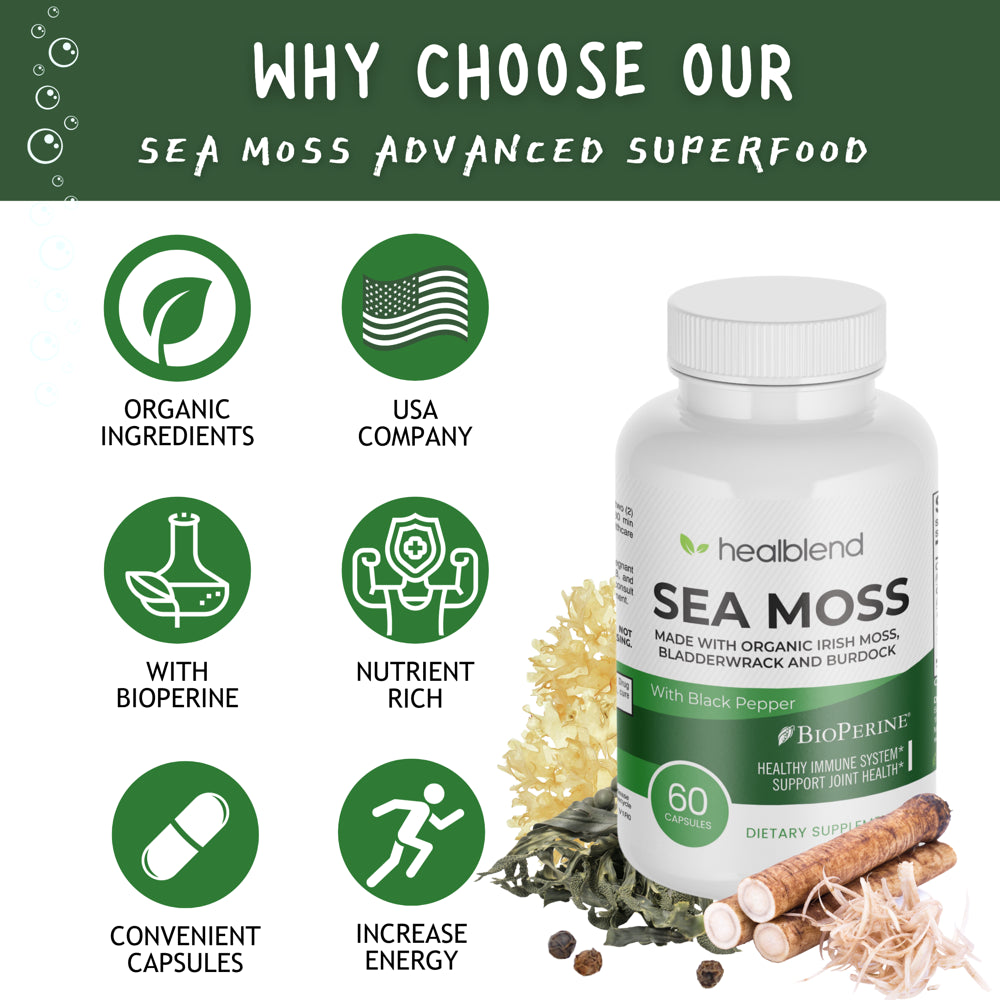 ORGANIC SEA MOSS BLEND: Experience the best of nature with our 100% organic sea moss complex, ensuring maximum potency and purity in every capsule.