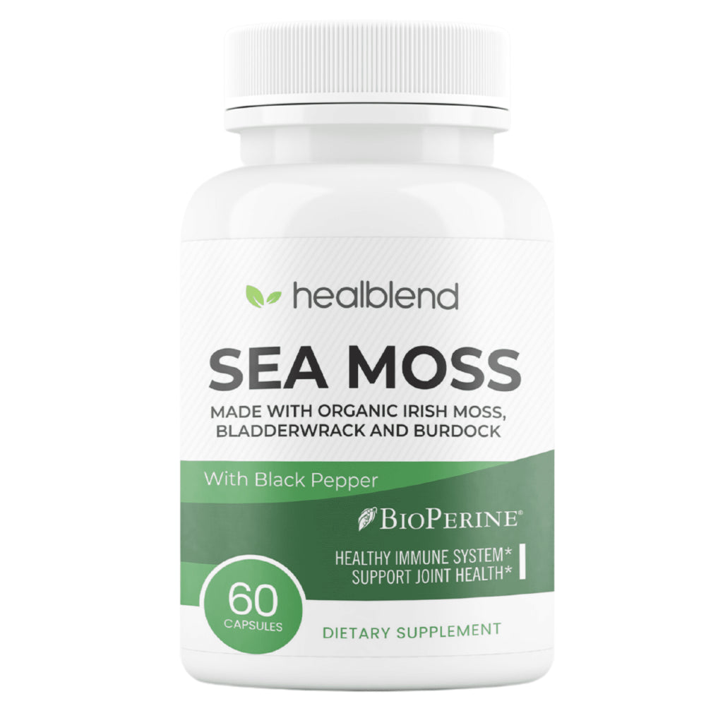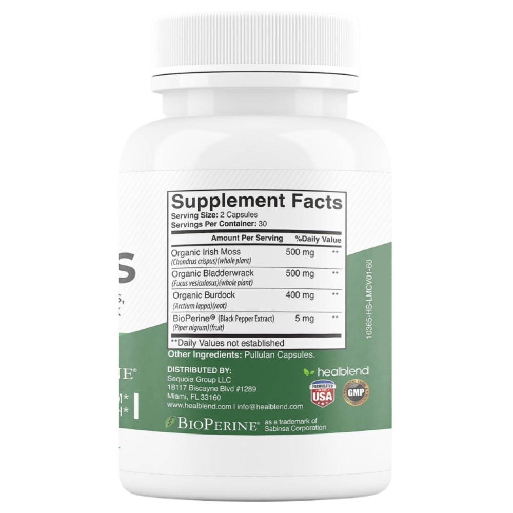 Healblend Organic Irish Moss, Bladderwrack, Burdock, & Bioperine - 1405Mg with Black Pepper - Natural Wellness and Detox Support Supplement - 60 Capsules