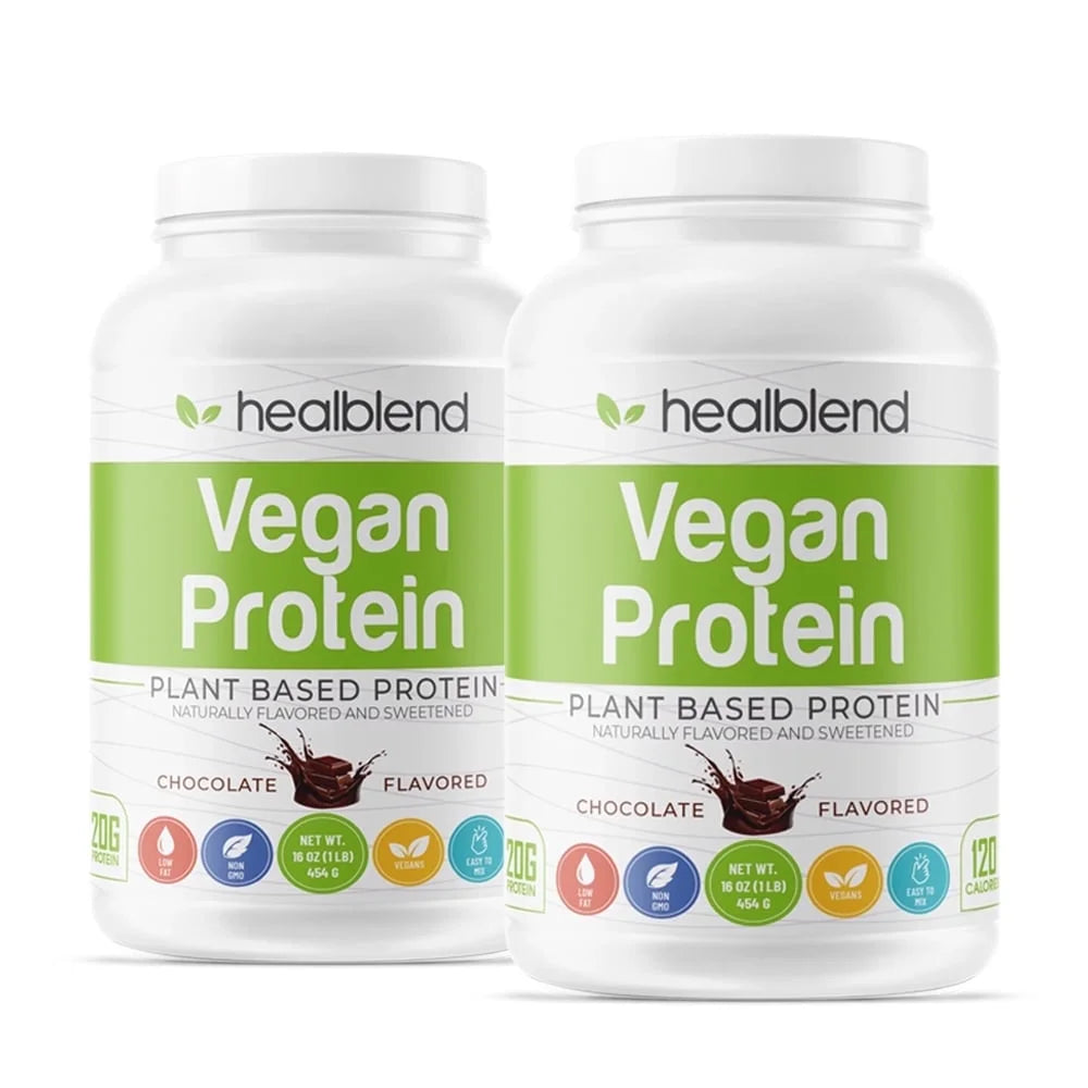 Healblend Organic Vegan Protein Powder - Plant Based Pea Protein Isolate Gluten-Free, Non-Gmo, Erythritol-Free, Soy-Free, Dairy-Free, Chocolate Flavor - 2-Pack - 2Lb