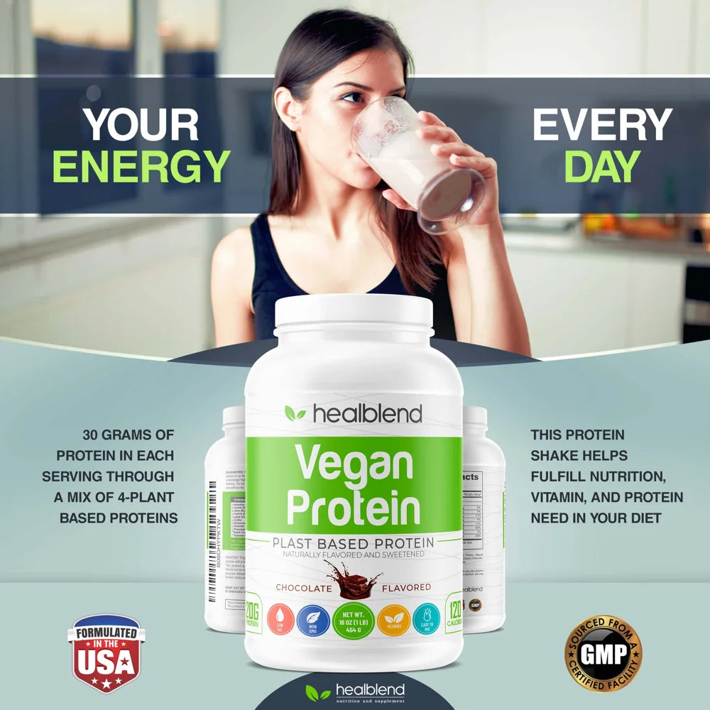 Healblend Organic Vegan Protein Powder - Plant Based Pea Protein Isolate Gluten-Free, Non-Gmo, Erythritol-Free, Soy-Free, Dairy-Free, Chocolate Flavor - 2-Pack - 2Lb - 2-Pack is backordered and will ship as soon as it is back in stock.