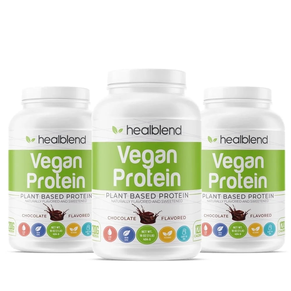 Healblend Organic Vegan Protein Powder - Plant Based Pea Protein Isolate Gluten-Free, Non-Gmo, Erythritol-Free, Soy-Free, Dairy-Free, Chocolate Flavor - 3-Pack - 3Lb - 3-Pack is backordered and will ship as soon as it is back in stock.