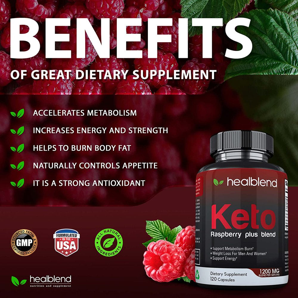 healblend Raspberry Supplement for Ketosis Diet with Green Tea Leaf, Açai, Apple cider vinegar, Caffeine and Resveratrol Extract blend for Immune System and Energy Support - Ketogenic Supplements for Men Women, 120 Capsules. Appetite suppressant for weight loss. Like pro burn away fat burner and carb blocker rich in vitamins for women and men. Anti weight gain Supplements