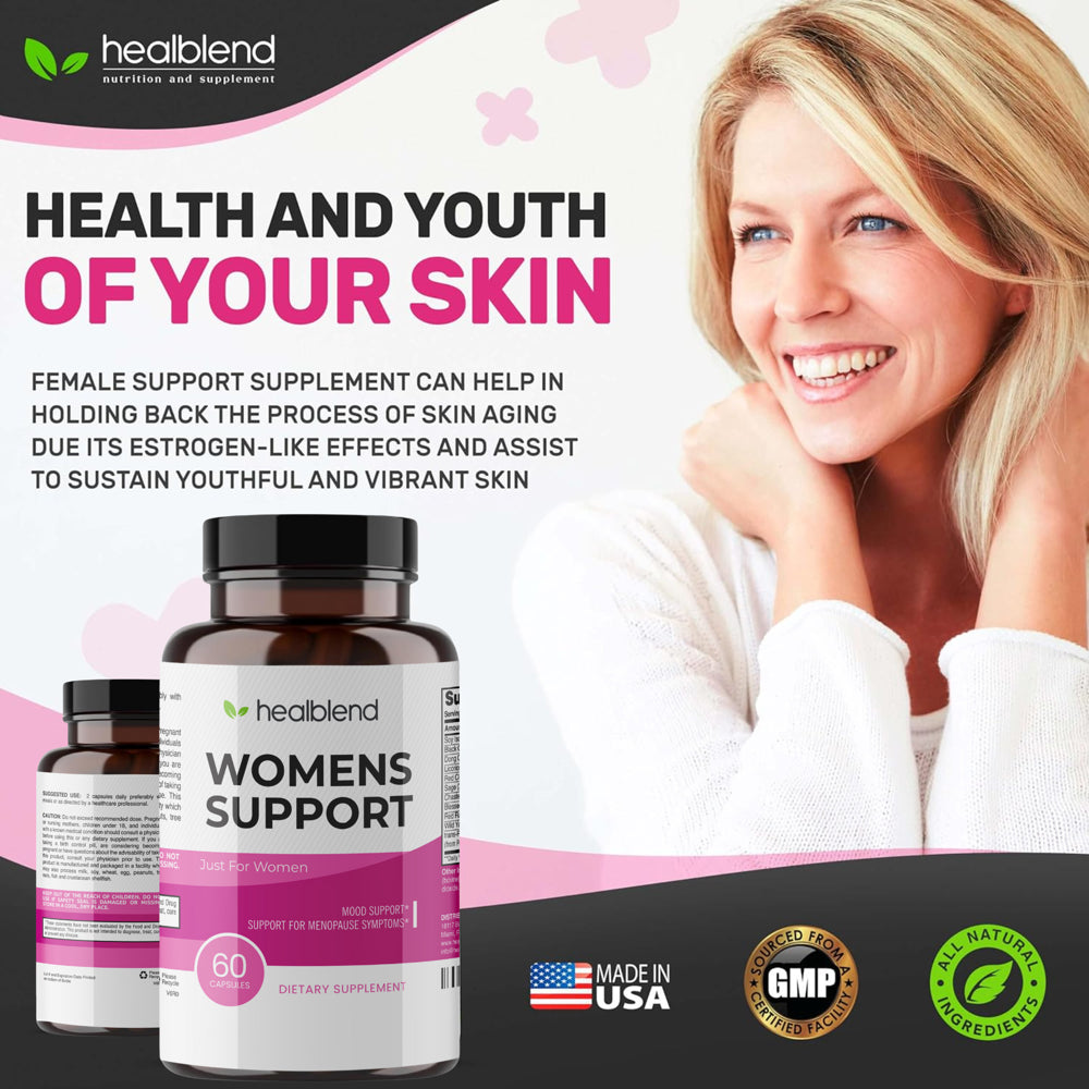 - Healthy benefits & support: Our women's support complex is beneficial to women in so many ways because of its powerful blend of different natural ingredient combined together to provide you the best helpful effects concerning your health. This female support will assist with menopause and menstrual issues, great benefit to your skin, enhance cognitive function, mood support etc.
