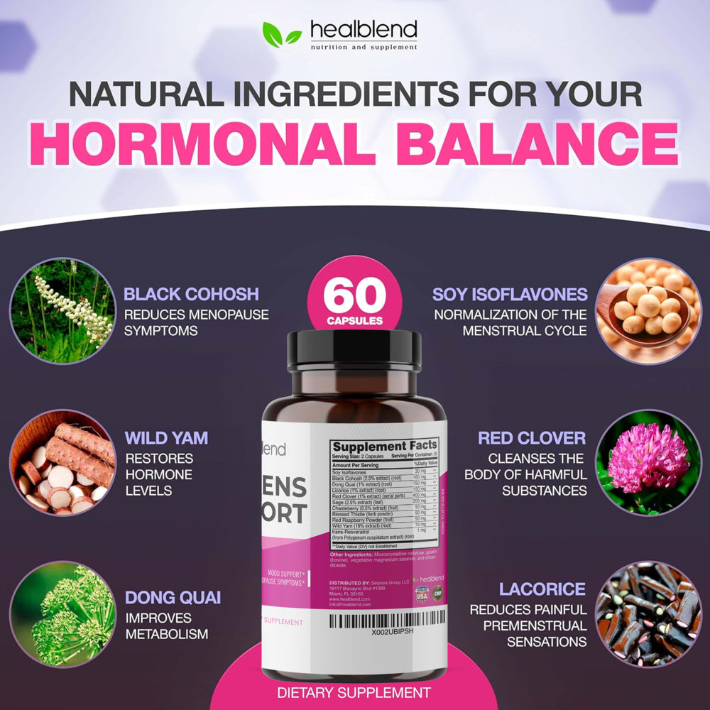 Healblend Women'S Support Supplements - Reduces Menopause Symptoms, Hormonal Balance, Promote Healthy Mood - 60 Capsules