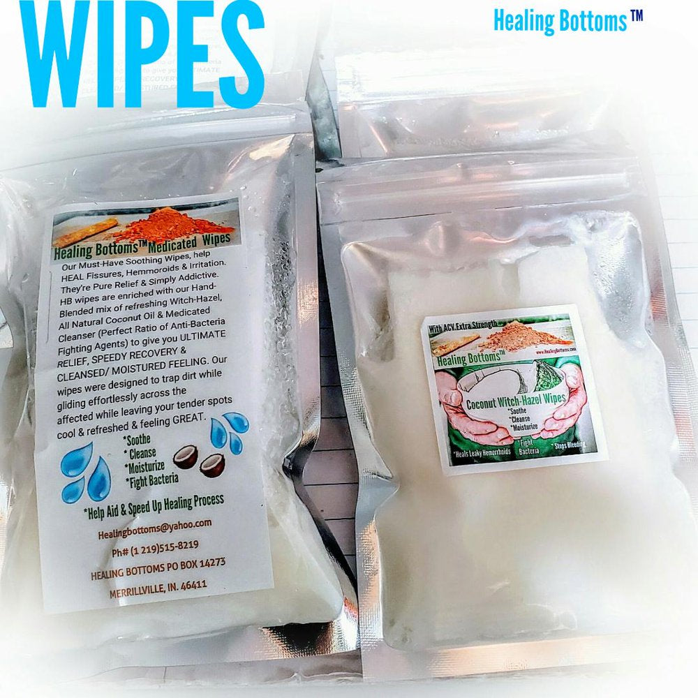 Healing Bottoms Must-Have Soothing Witch Hazel Wipes, HEAL Fissures & Hemorrhoids, Infection. They're Pure Relief, EXTRA moist & Simply Addictive. HB's Witch Hazel Wipes are enriched with our Hand-Blended mix of refreshing Witch-Hazel, All Natural Coconut Oil, Medicated Cleanser (Perfect ratio of Anti-Bacteria fighting agents) to give you ULTIMATE RELIEF, SPEEDY RECOVERY & CLEANSED/ MOISTURED FEELING. Our wipes were designed to trap dirt while gliding effortlessly across the affected while leaving your tender spots cool & refreshed & feeling GREAT. (Approx. 20ct Witch Hazel Coconut Wipes + 10ct EXTRA Strength Apple Cider Vinegar Wipes- Shrinks Hemorrhoids & Stops Bleeding Fast) 30 total. When treating bleeding fissures/hemorrhoids this product works best with Healing Bottoms Suppositories and for constipation pick up a bottle of our Turmeric Supplements. Don't Delay another minute. Order Now, to experience total Restoration! You will love our witch Hazel Wipes!