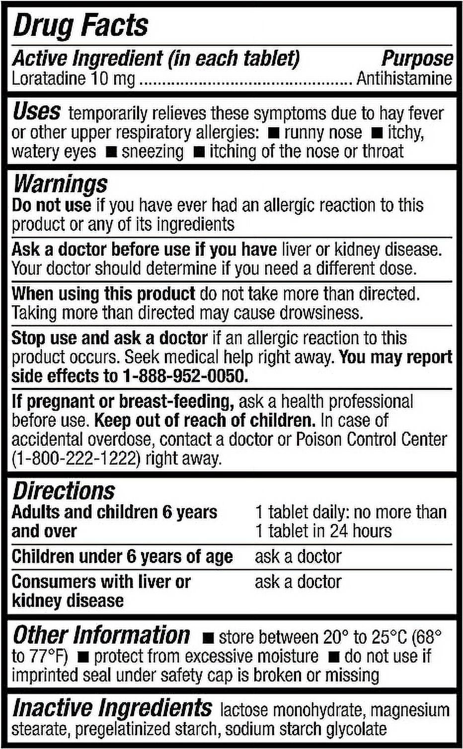 - HealthA2Z Allergy Relief Loratadine 10mg Compare to Claritin Tablets Active Ingredient