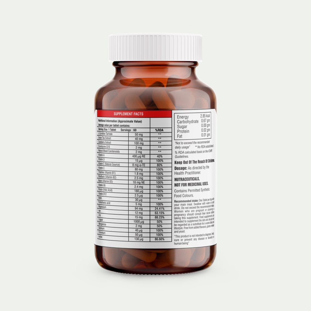 PRODUCT DESCRIPTION Key Features: Multivitamins & minerals supports strong bones, immune support, healthy teeth and gums & overall development. Maintains healthy immune support system, helps in energy eye brain vision development. Taking a daily intake of the right supplement can help maintain the body's general health and keep the skin in peak condition. Builds blood and supports natural energy production with Iron essential vitamins and minerals: Vitamin C, Vitamin E, Vitamin B12, and Zinc. Ingredients: L-Carnitine Tartrate, Green Tea Extract, Cranberry Extract, Co-enzyme Q10, Natural Mixed Carotenoids, Vitamin A, Vitamin D, Thiamine (Vitamin B1), Riboflavin (Vitamin B2), Niacin Specifications: Brand - HealthBest Type - Health Supplements Quantity - 60 Tablets Product Description: HealthBest Teenbest Tablet is designed for teenagers. During adolescence, demand is particularly high on the body because of the huge tensions and stress of daily life combined with the rigours of educational performance. Sometimes the body is weak, fatigued and worn. This reflects on the state of the body and skin. Regular consumption of the proper supplement may help keep the body in high shape and the skin. Items included in the Package: 1 Bottle - 60 Tablets Country of Origin: India