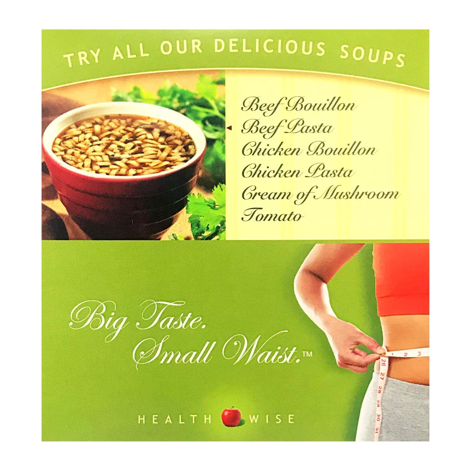 Healthwise Beef Soup with Pasta For- Hunger Control - for Weight Loss- - Protein Supplement - (7 Packets of 0.95 Oz., Net 6.67 Oz.) - 15 Grams of Protein - 90 Calories