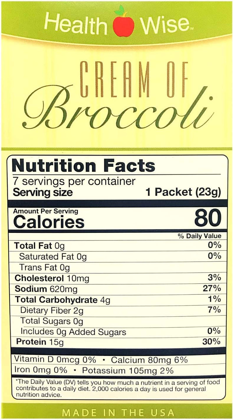 Healthwise Cream of Broccoli Soup For- Hunger Control - for Weight Loss- - Protein Supplement - (7 Packets of 0.81 Oz., Net 5.67 Oz.) - 15 Grams of Protein - 80 Calories