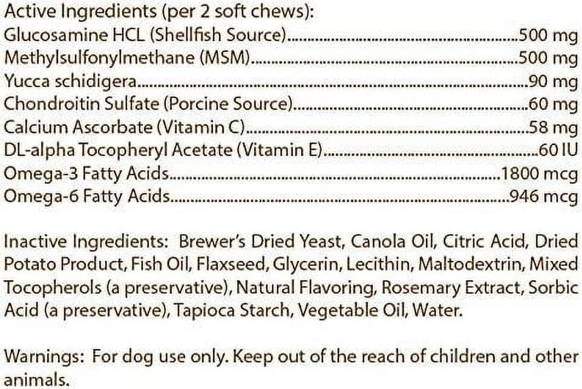 - Healthy Breeds Glucosamine Double Strength Joint Support soft chews are scientifically formulated with Yucca, Glucosamine, MSM, Chondroitin, and Omega 3 & 6 to provide support to your dog
