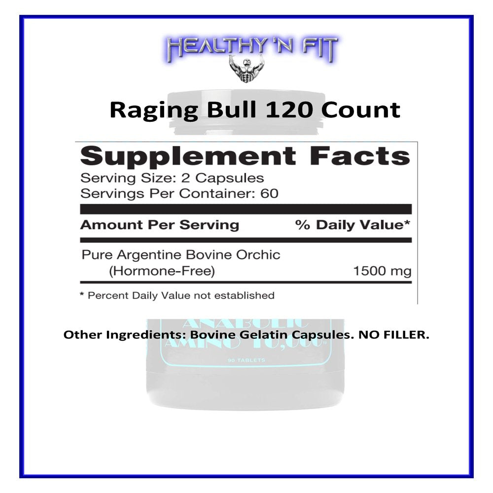 Healthy 'N Fit® RAGING BULL™ MEGA ORCHIC: Raging Bull contains 100% Pure Orchic from Hormone-Free Argentine Beef with zero fillers or other added ingredients. Testes secrete the hormone testosterone which is vital to male physical and sexual development. Once used by ancient Olympians and Gladiators, Orchic can be a nutritional alternative to support muscle mass and strength when used in combination with exercise. Raging Bull provides natural virility support with no side effects. It is a great natural source of highly bioavailable amino acids, vitamins, minerals, and other nutrients.