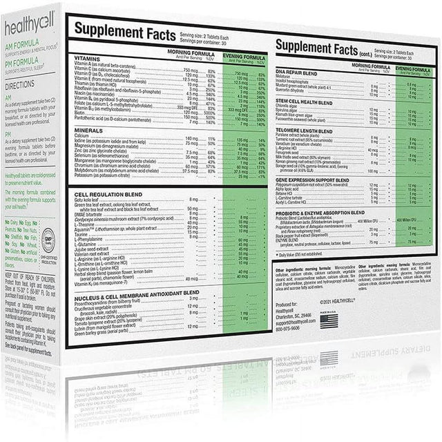 - CELL REGULATION: Healthycell AM/PM's unique morning and evening formulas provide a system to help your cells effectively use nutrients, so they work with the body’s natural cycles. In the morning, cells need a boost of energy. In the evening, cells need support in repairing DNA. The PM formula also supports restful sleep *
